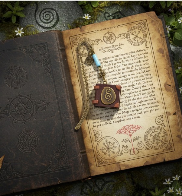 Le véritable secret réside entre ses pages d'argile. Imprégnées d'une essence phosphorescente, elles s’abreuvent de la lumière du jour (ou d'une lampe) pour rayonner d'une lueur verte surnaturelle une fois la nuit tombée. Tel un feu follet dans la forêt de Brocéliande, ce grimoire vous guide vers votre livre, même au cœur des ténèbres.