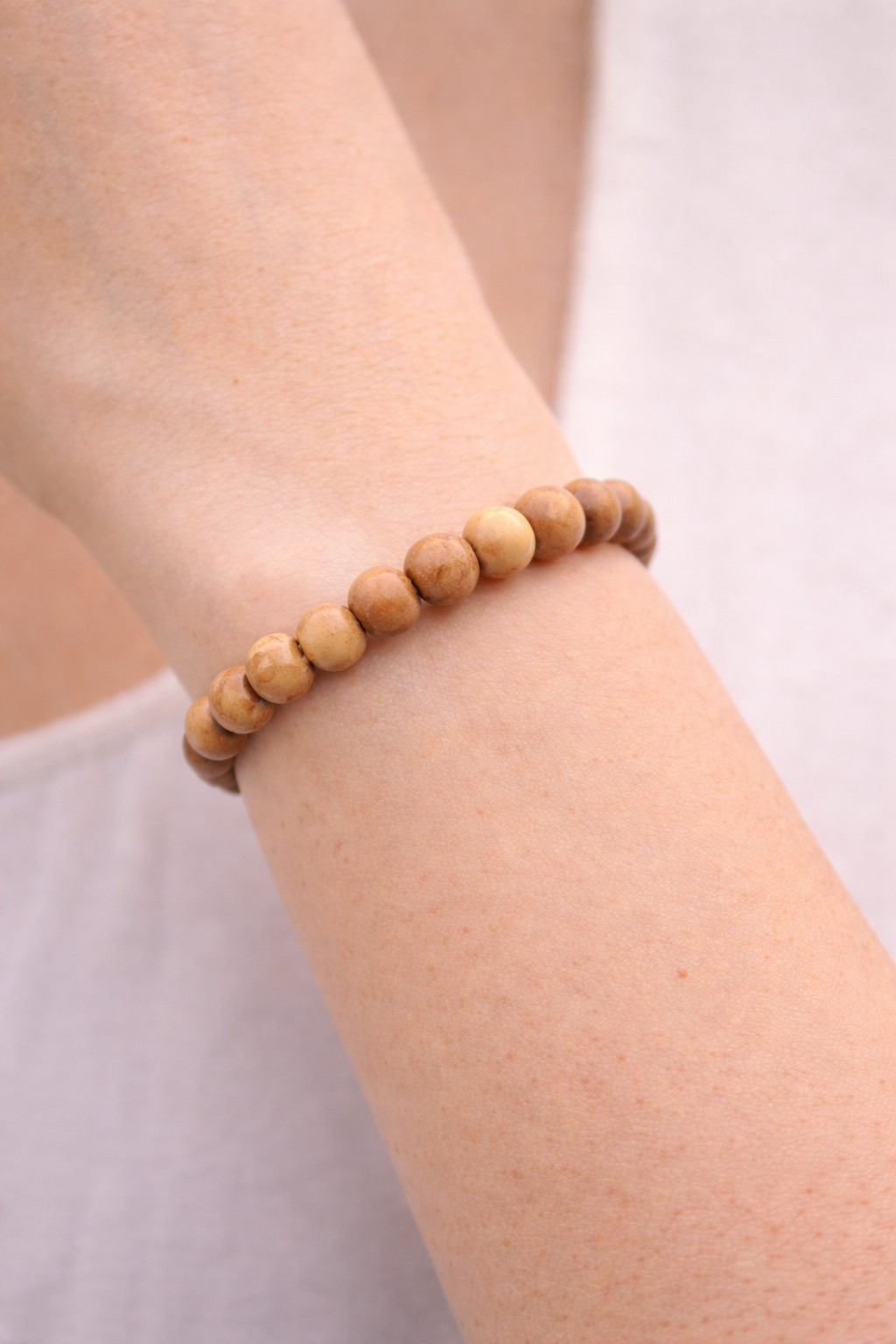 Le veinage marqué du bois d’olivier met en valeur chaque perle et confère au bracelet un caractère chaleureux et authentique. Un bijou naturel, facile à porter au quotidien.