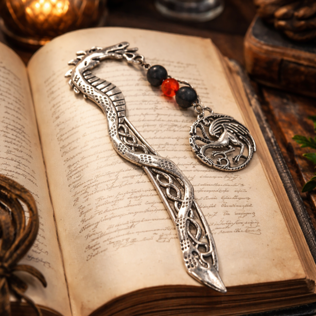 Un accessoire élégant et symbolique, parfait pour les amateurs de lecture, de fantasy et d’univers médiévaux.
